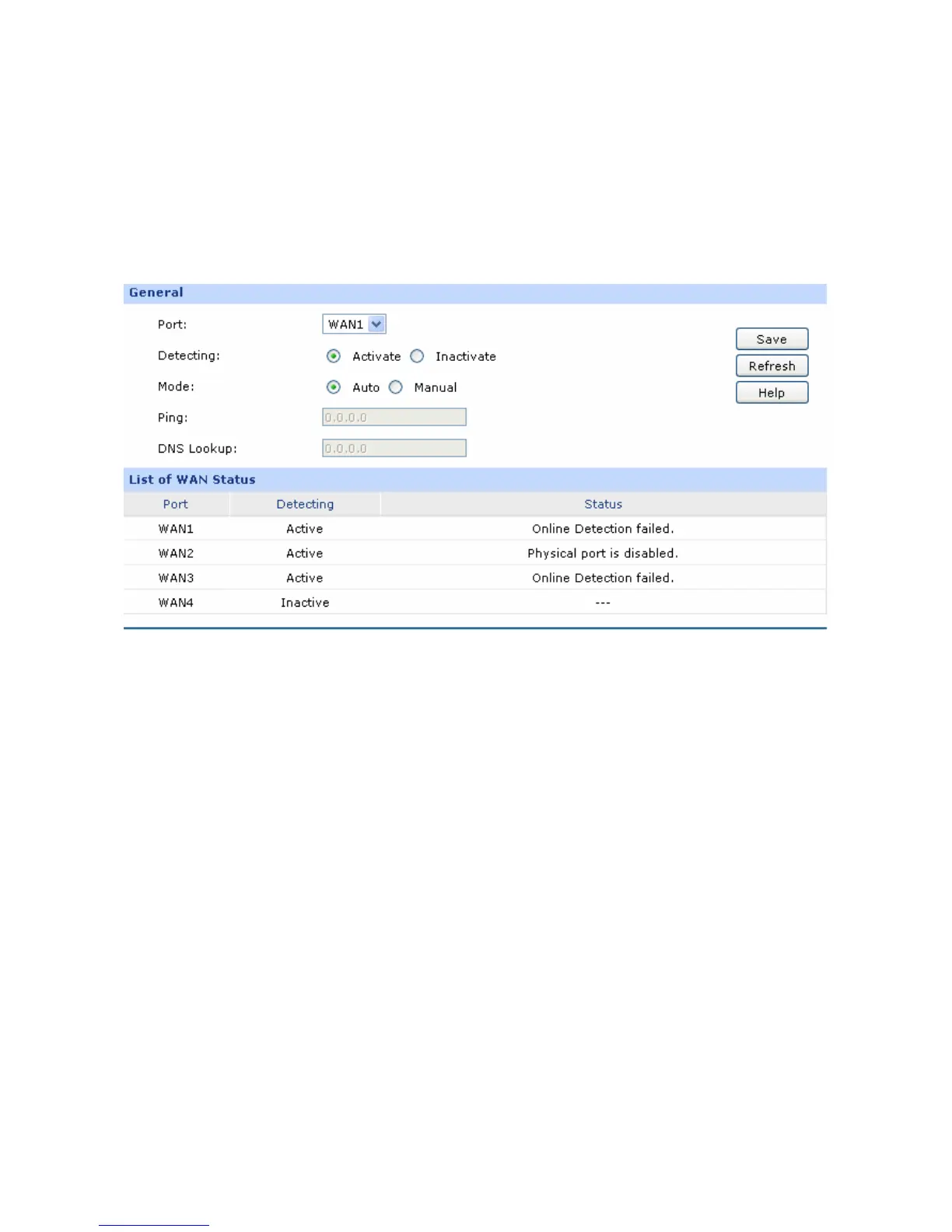 Lookup. When Online Detection is inactive, WAN status will be detected