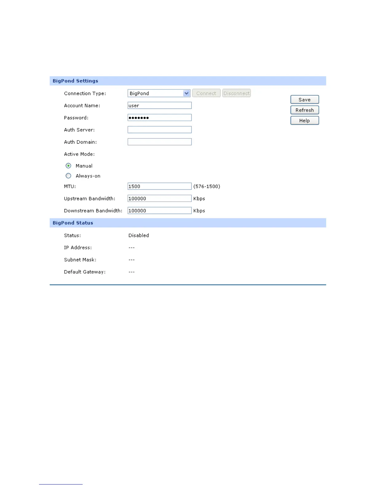 Select BigPond if your ISP provides a BigPond connection. Click