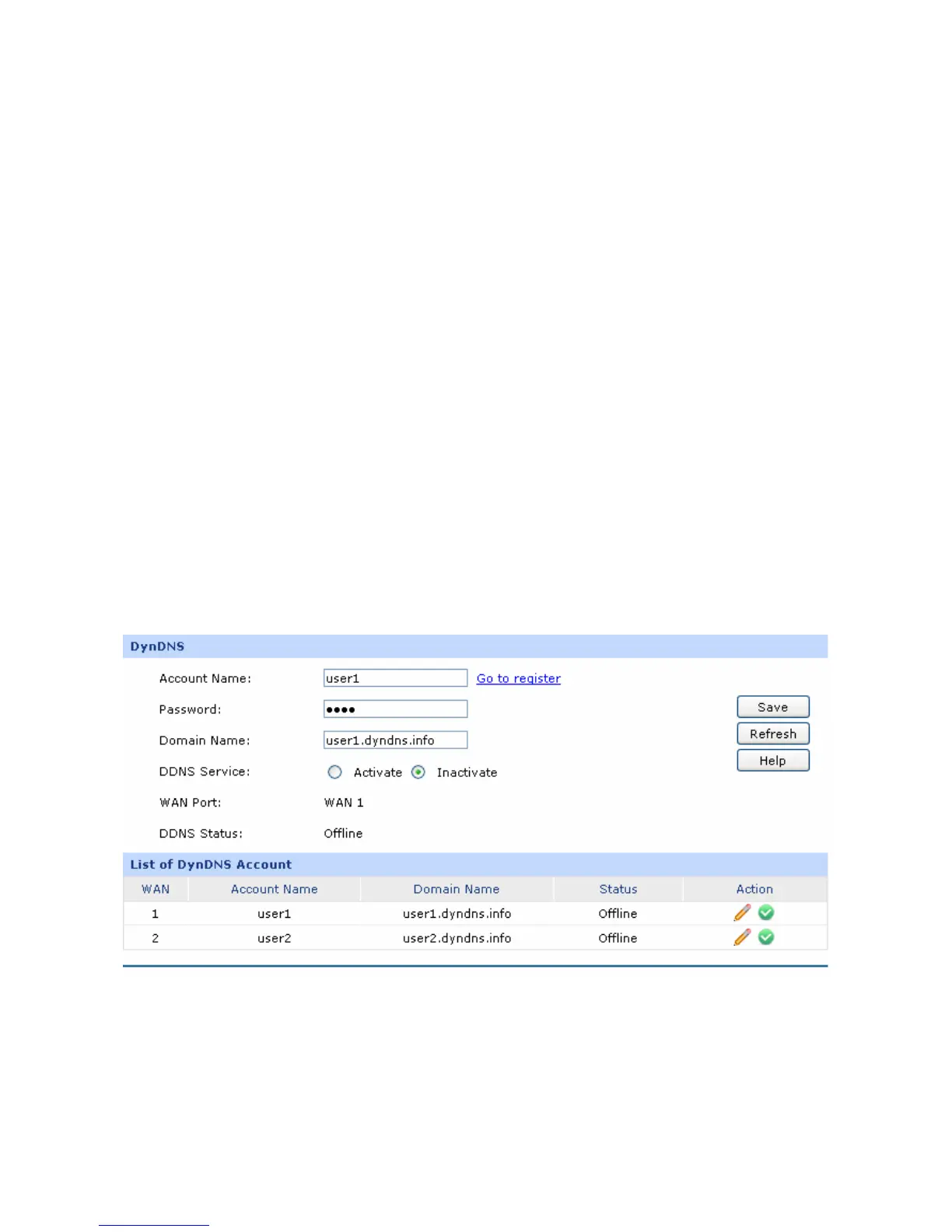 Choose the menu Services→Dynamic DNS→DynDNS to load the following page.