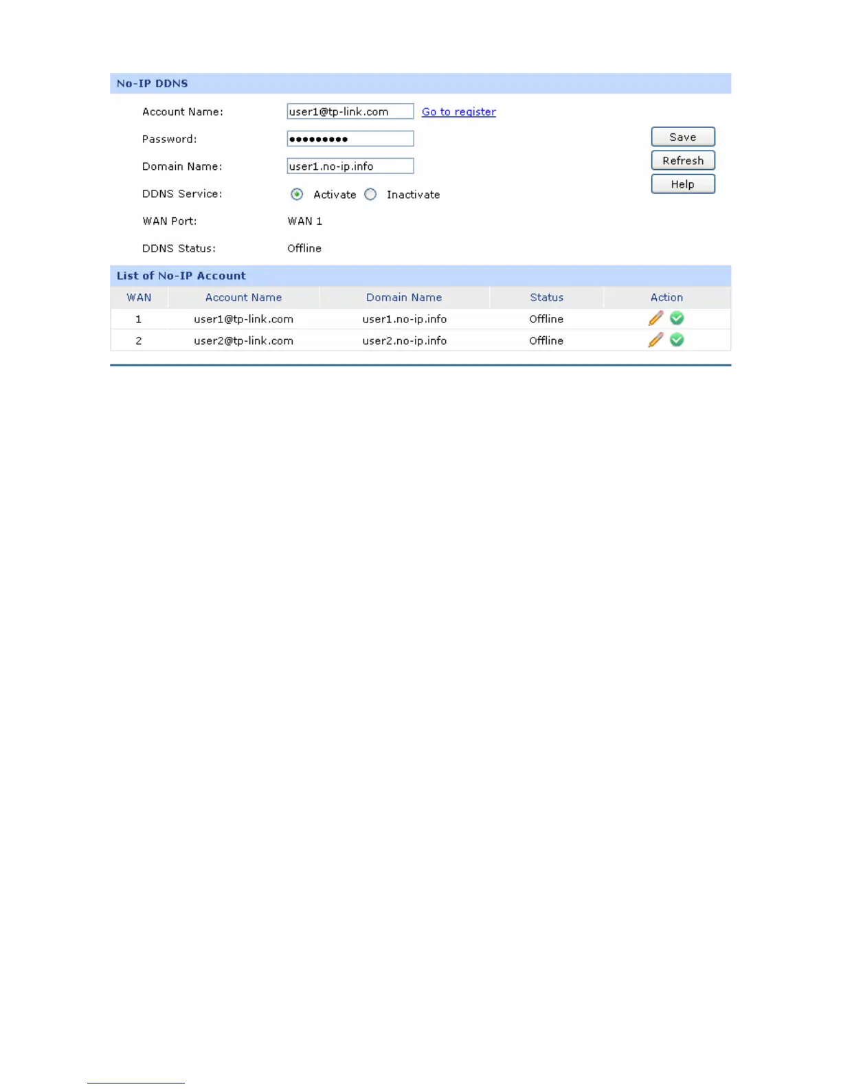 In this table, you can view the existing DDNS entries or edit them by the Action button.