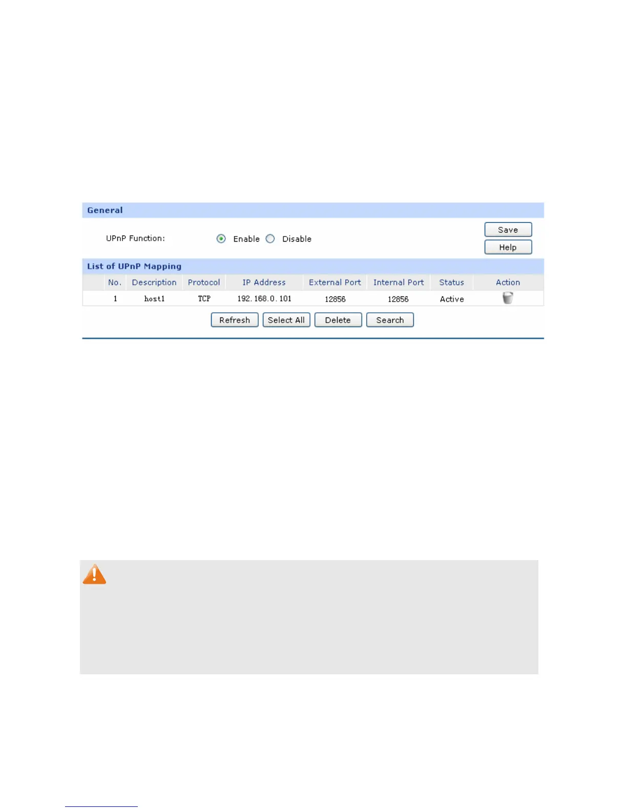 After UPnP is enabled, all UPnP connection rules will be displayed in the list of UPnP Mapping.