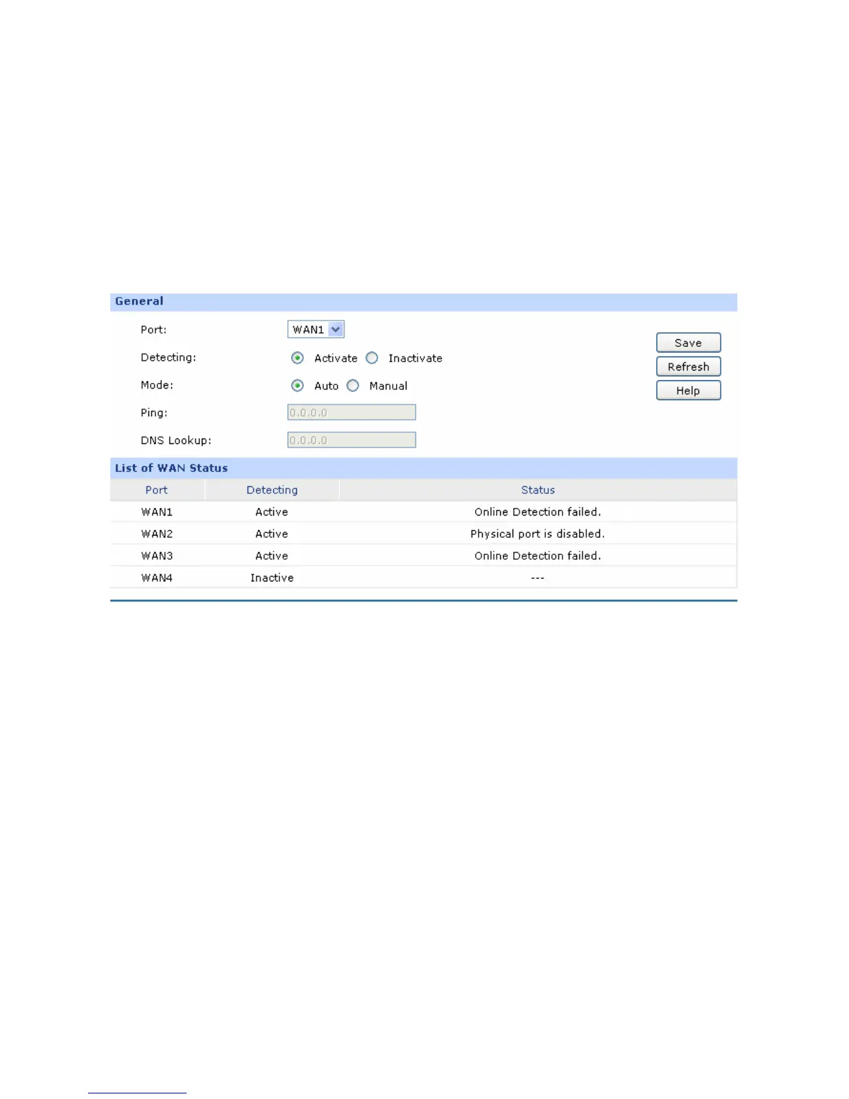 Lookup. When Online Detection is inactive, WAN status will be detected