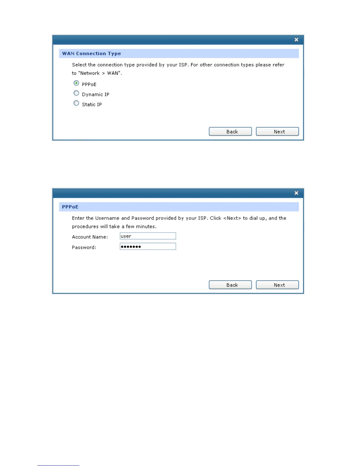 1) If you choose PPPoE, you will see the screen as the Figure 3-12 shown. Enter the Account