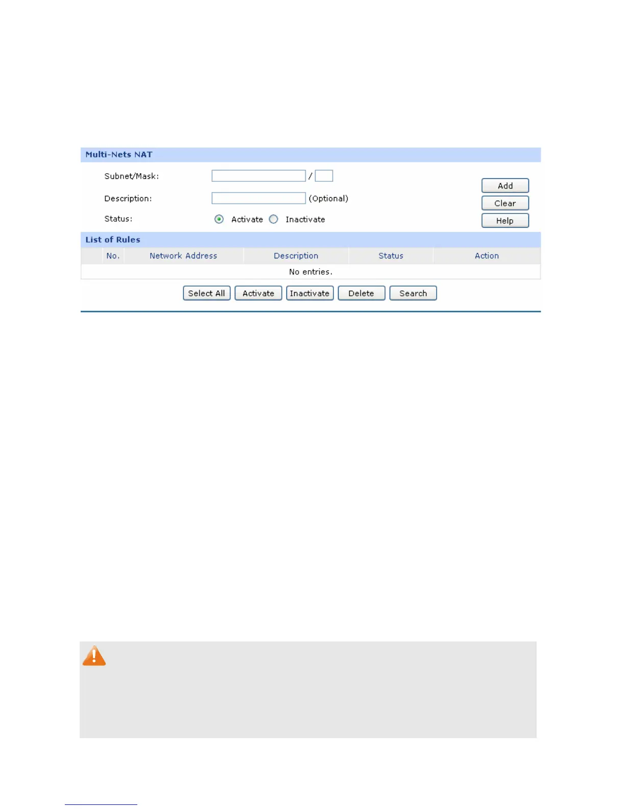 Choose the menu Advanced→NAT→Multi-Nets NAT to load the following page.