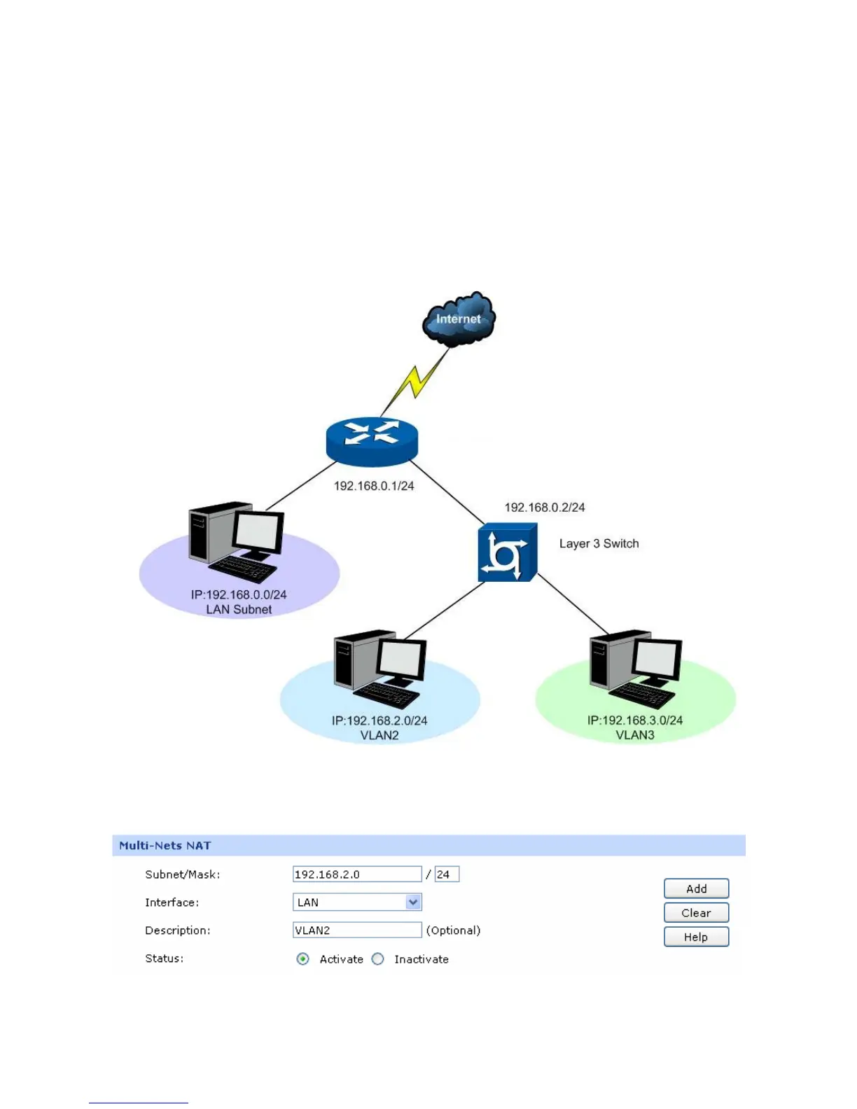 switch to the Router is 192.168.0.2. Now the hosts within VLAN2 and VLAN3 desire to access the