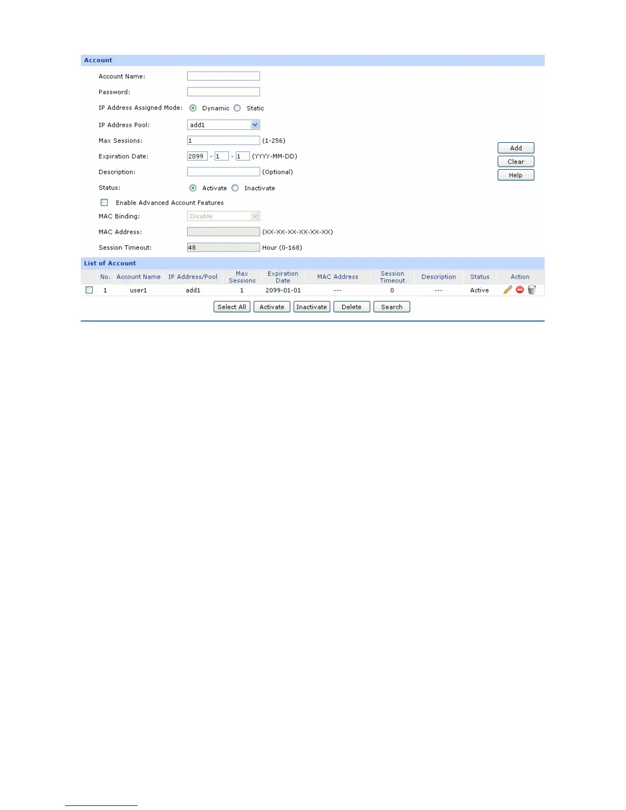 Specify the Expiration Date of the account. The default is 2099-1-1.