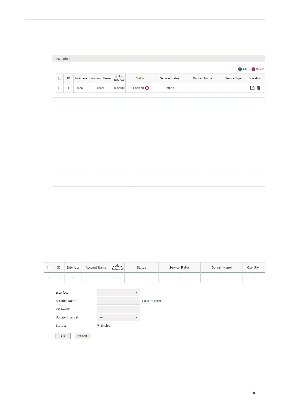 Status Displays whether the corresponding DDNS service is enabled.