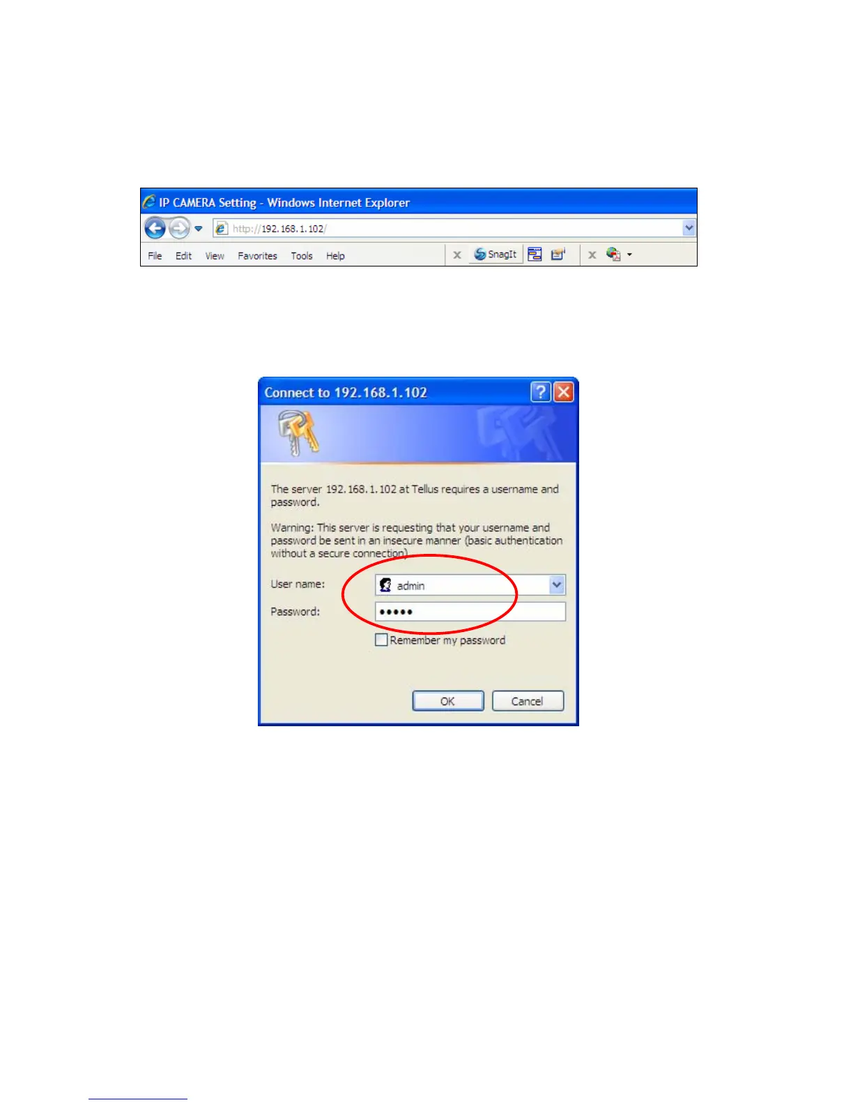 The default User name “admin” and the Password “admin” are set at the factory for the administrator.