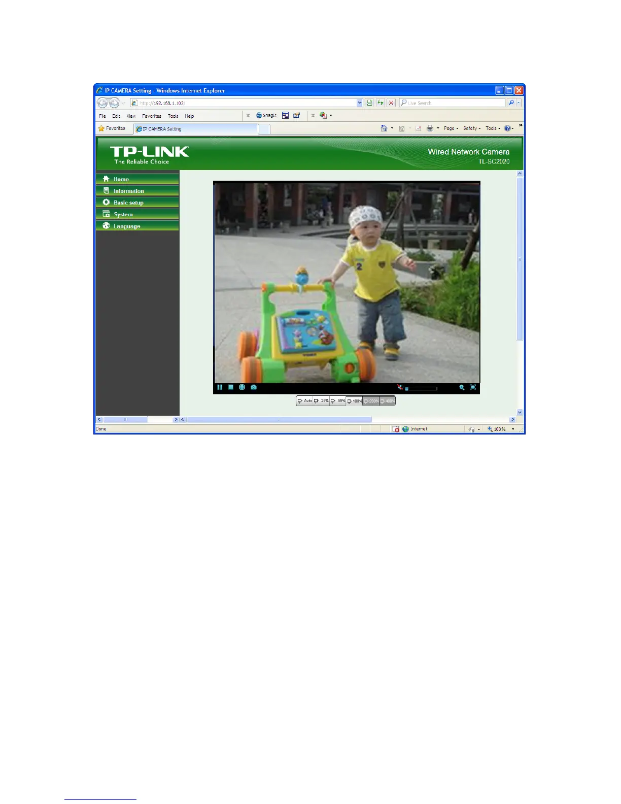 3 The monitor image will be displayed in your browser. In the far left side of main configuration are
