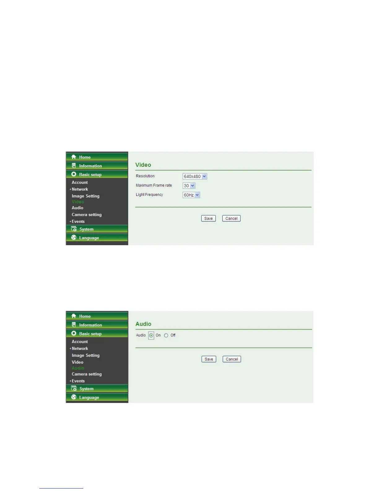 Maximum Frame rate: Select the maximum frame rate among 30, 20, 15, 10, 7, 5 and 1.