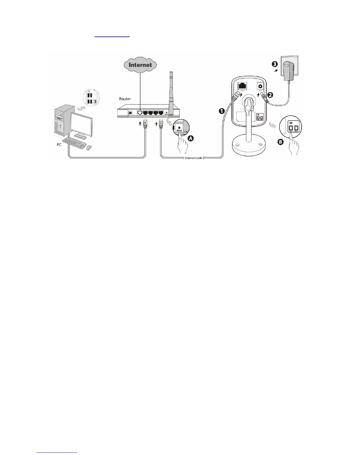 1. Connect the Camera to the LAN network (Router or Switch) via Ethernet cable.