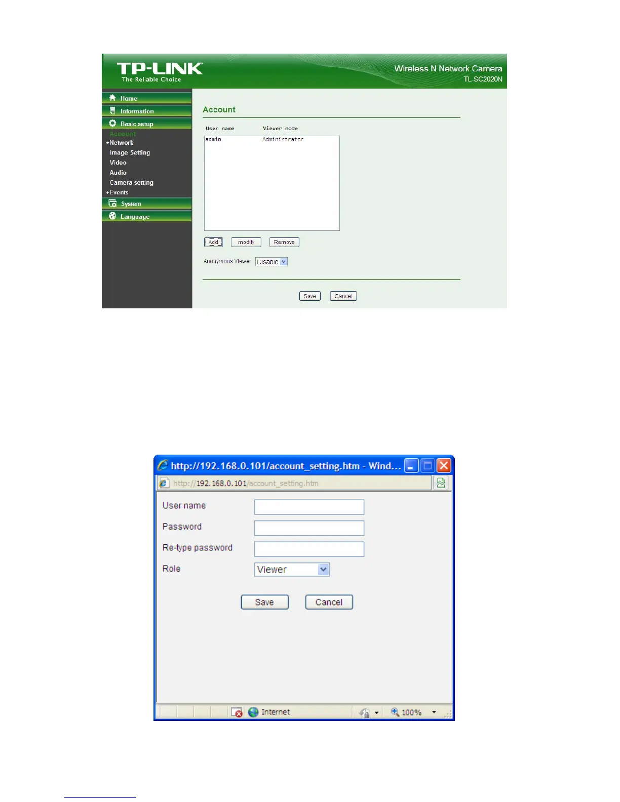 Anonymous Viewer: Select Disable and the anonymous viewers cannot access the Camera.