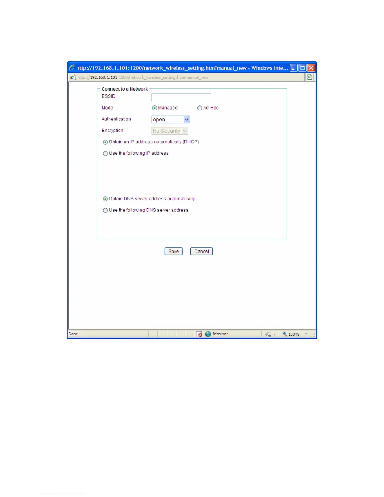 wireless setting page will display. Then enter the ESSID of the wireless network, select a mode, select