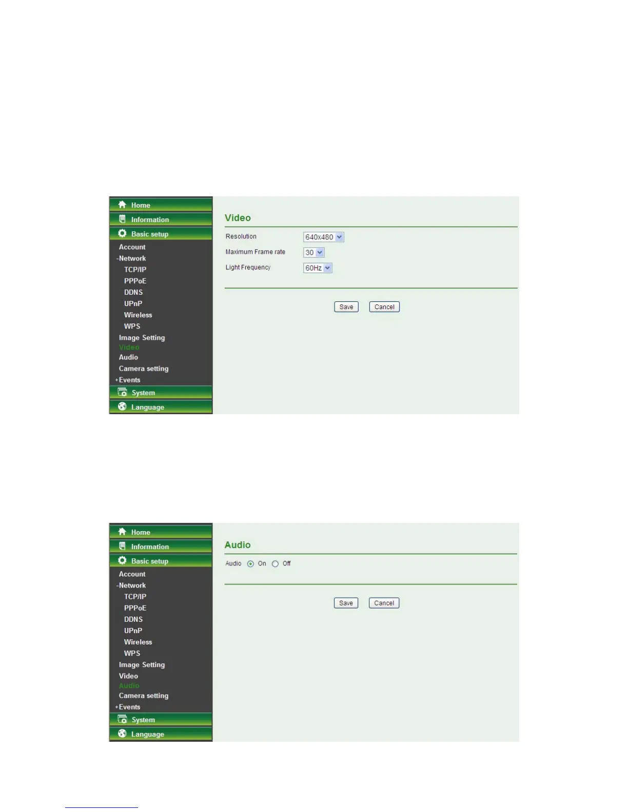 Maximum Frame rate: Select the maximum frame rate among 30, 20, 15, 10, 7, 5 and 1.