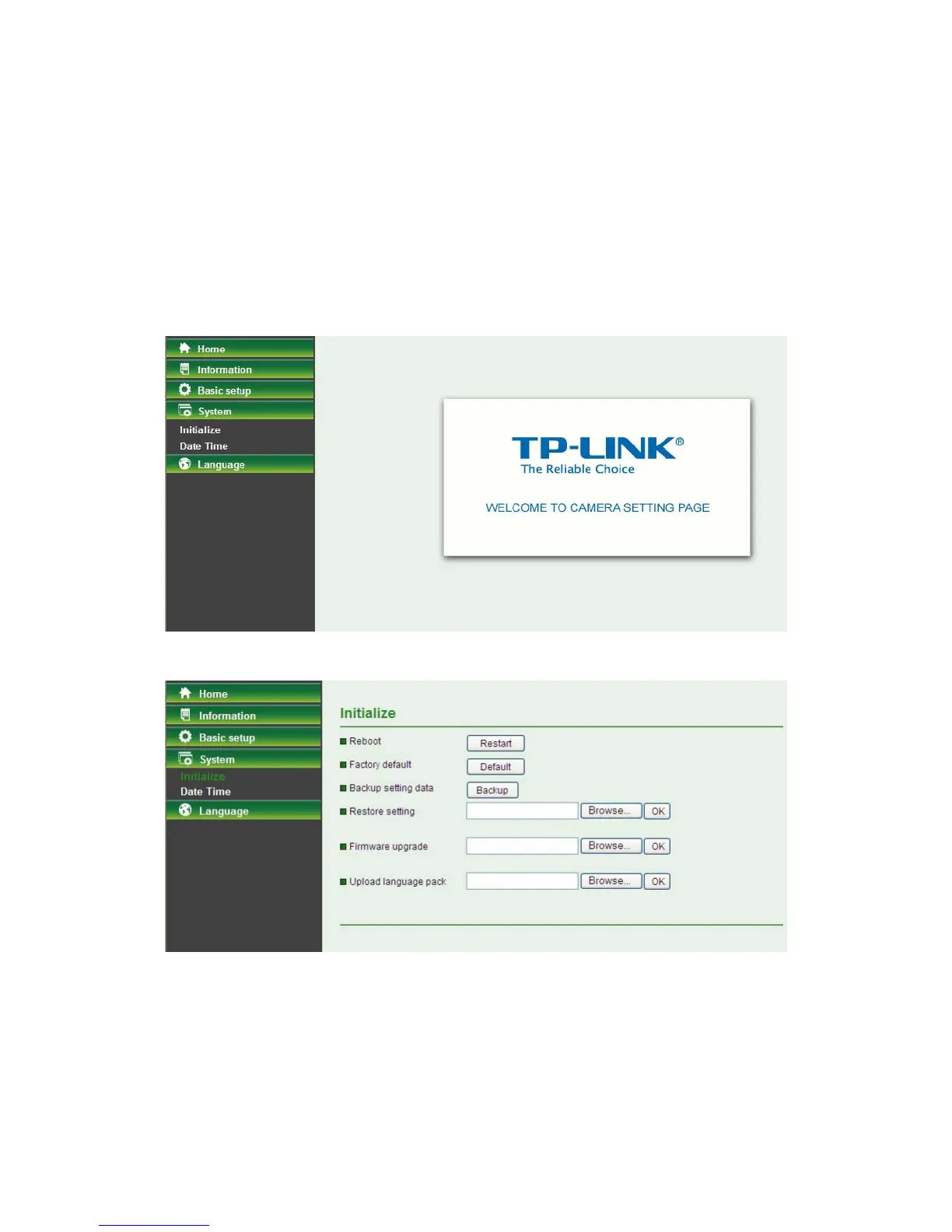 Restore Setting: Download the saved setting data of this Camera. Click “Browse” and select