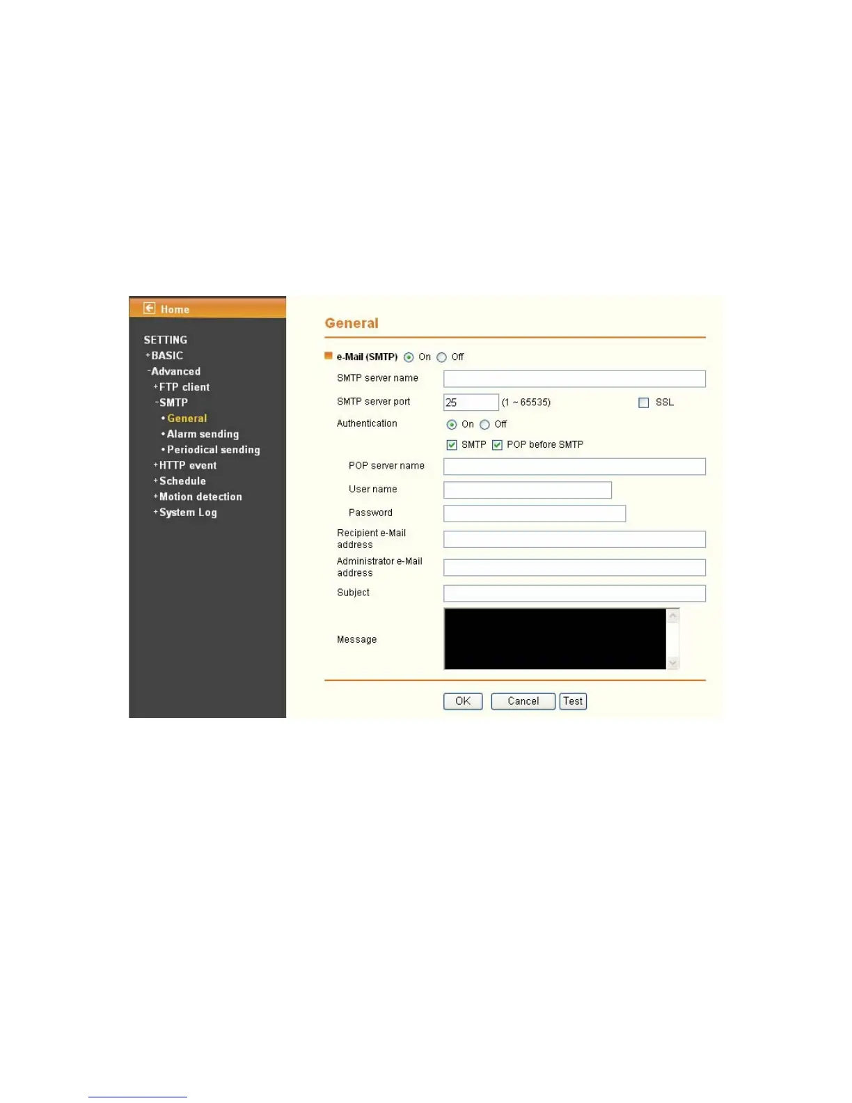 server. This setting is necessary when the SMTP server which sends e-mails performs