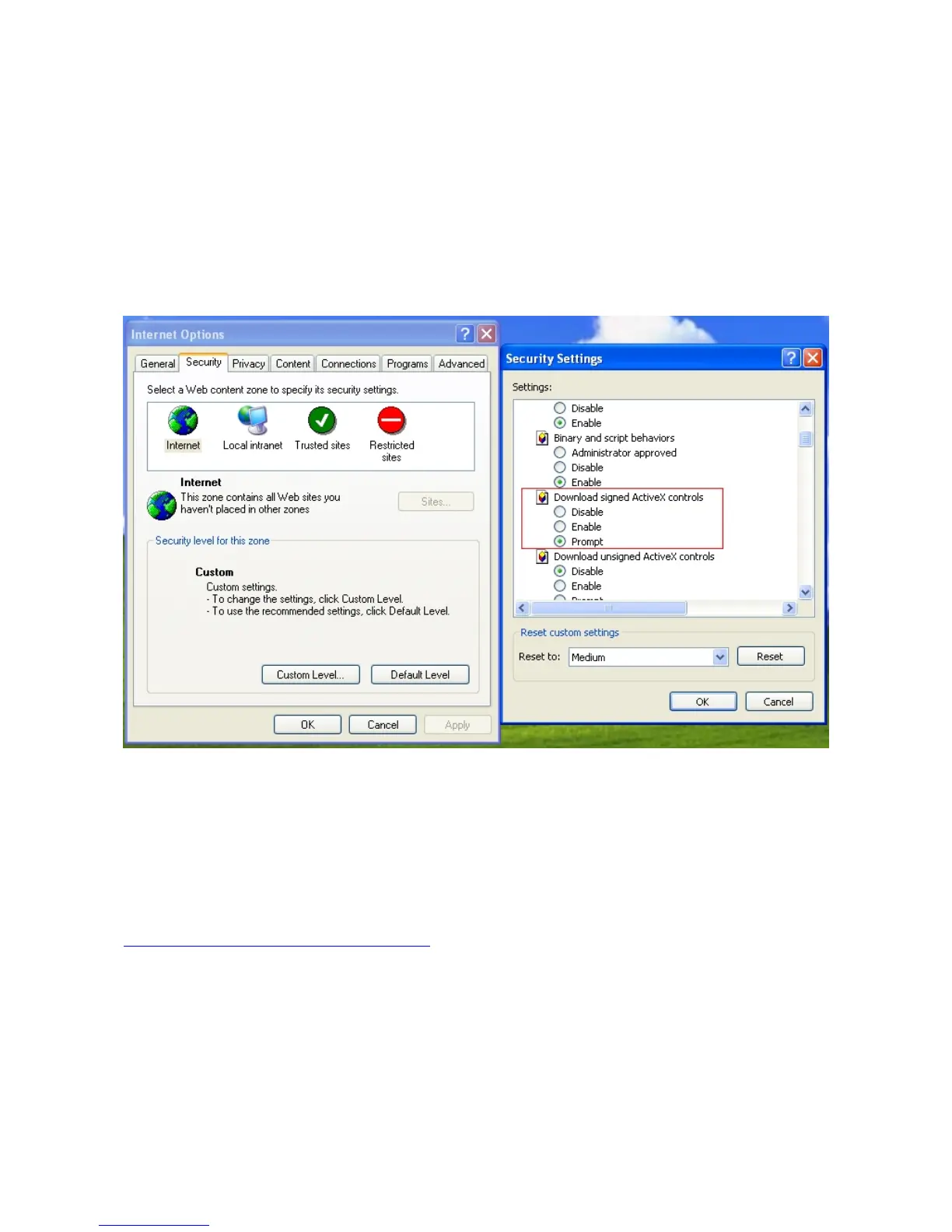 As to the ActiveX installation, please check your internet option settings to confirm whether you’re