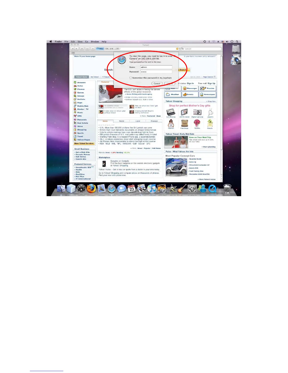 2. Enter the default User name “admin” and password “admin” in the dialog box as shown below.