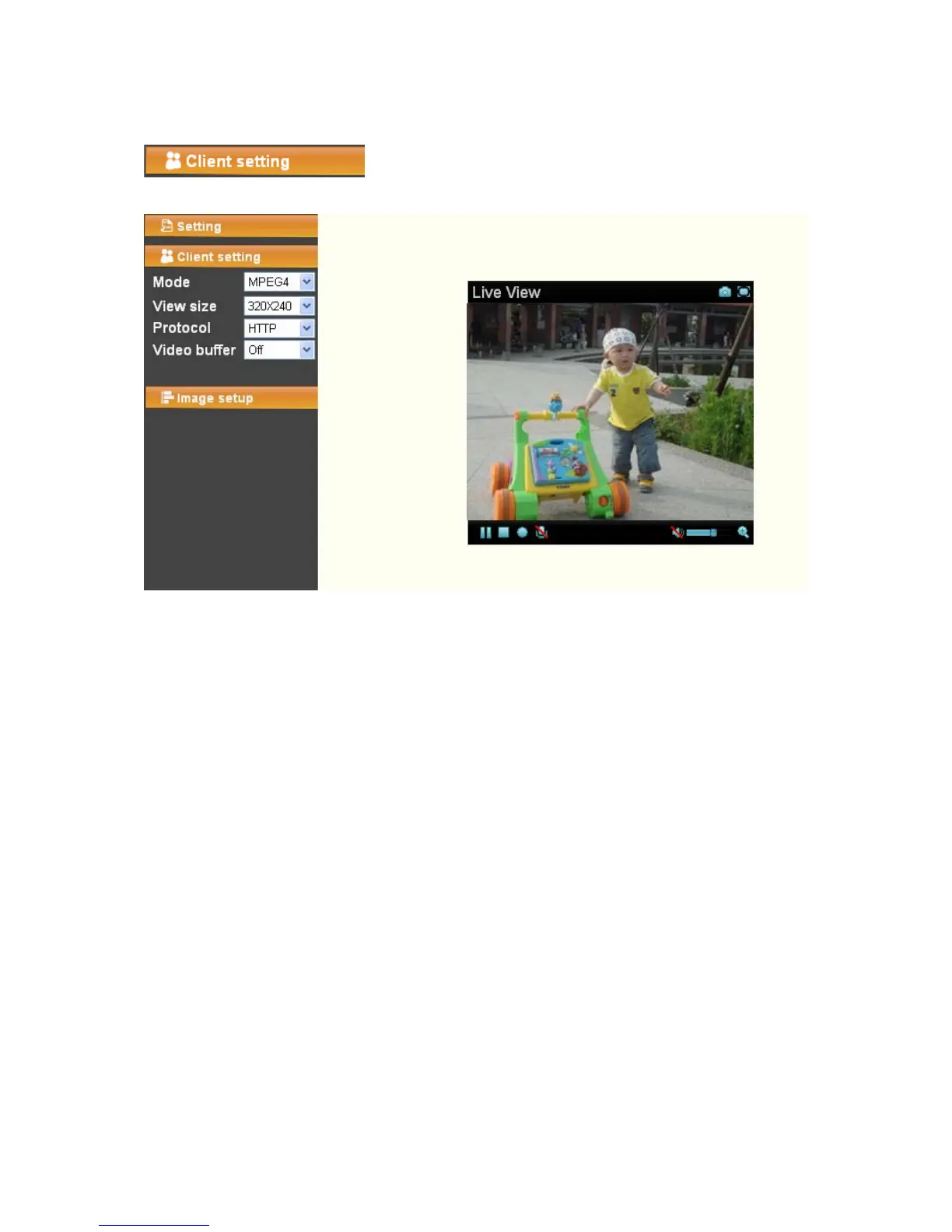 Client Setting to select a suitable View Size before using the IP camera as shown in the figure
