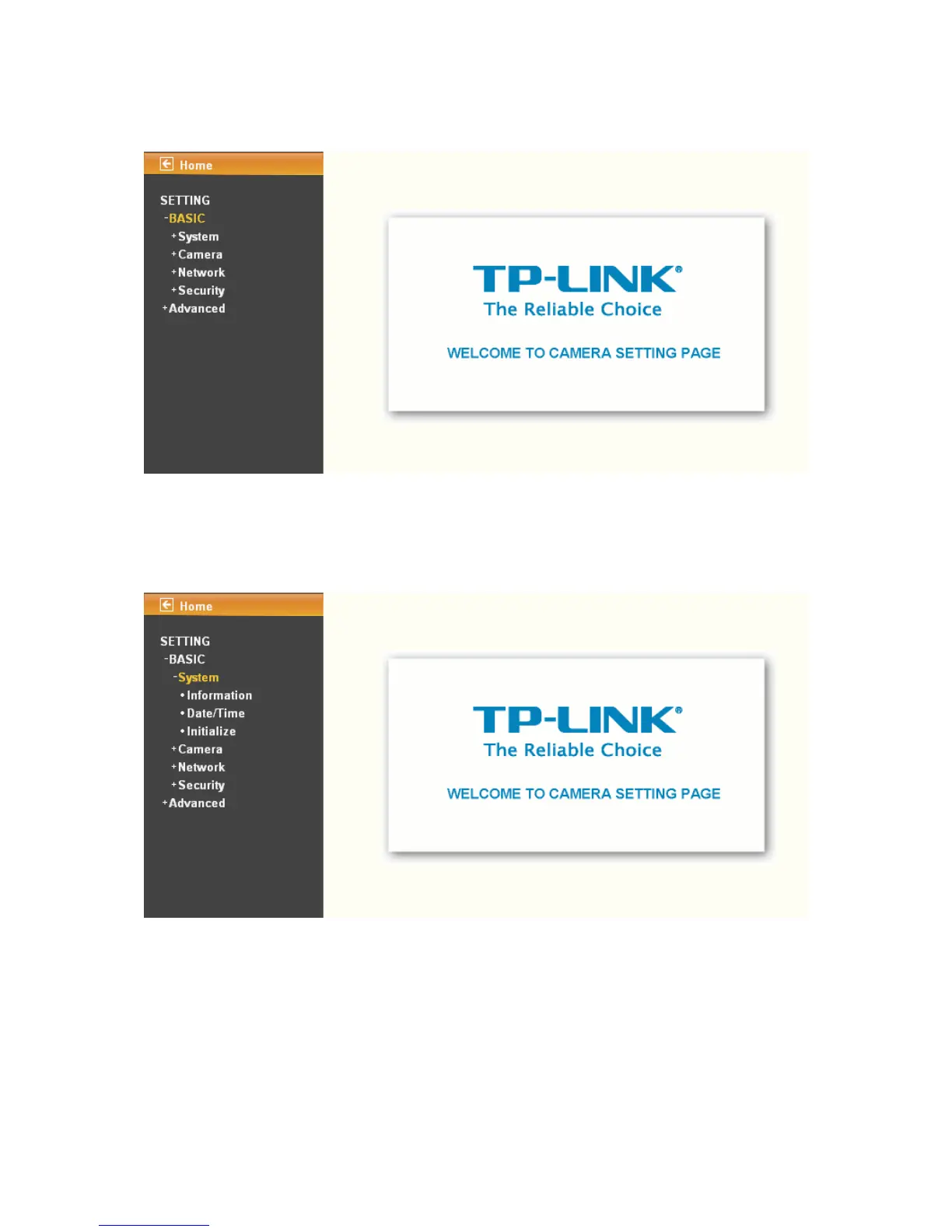 Click BASIC to display the submenus including System, Camera, Network, and Security.
