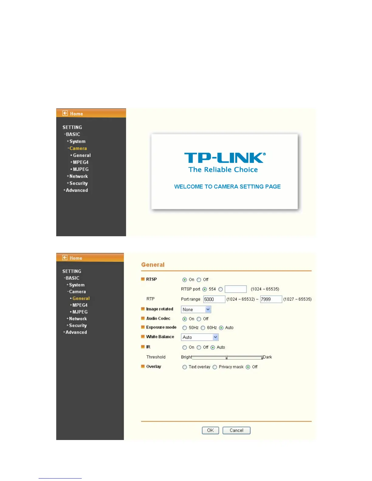 Click Camera to display the submenus including General, MPEG4 and MJPEG.