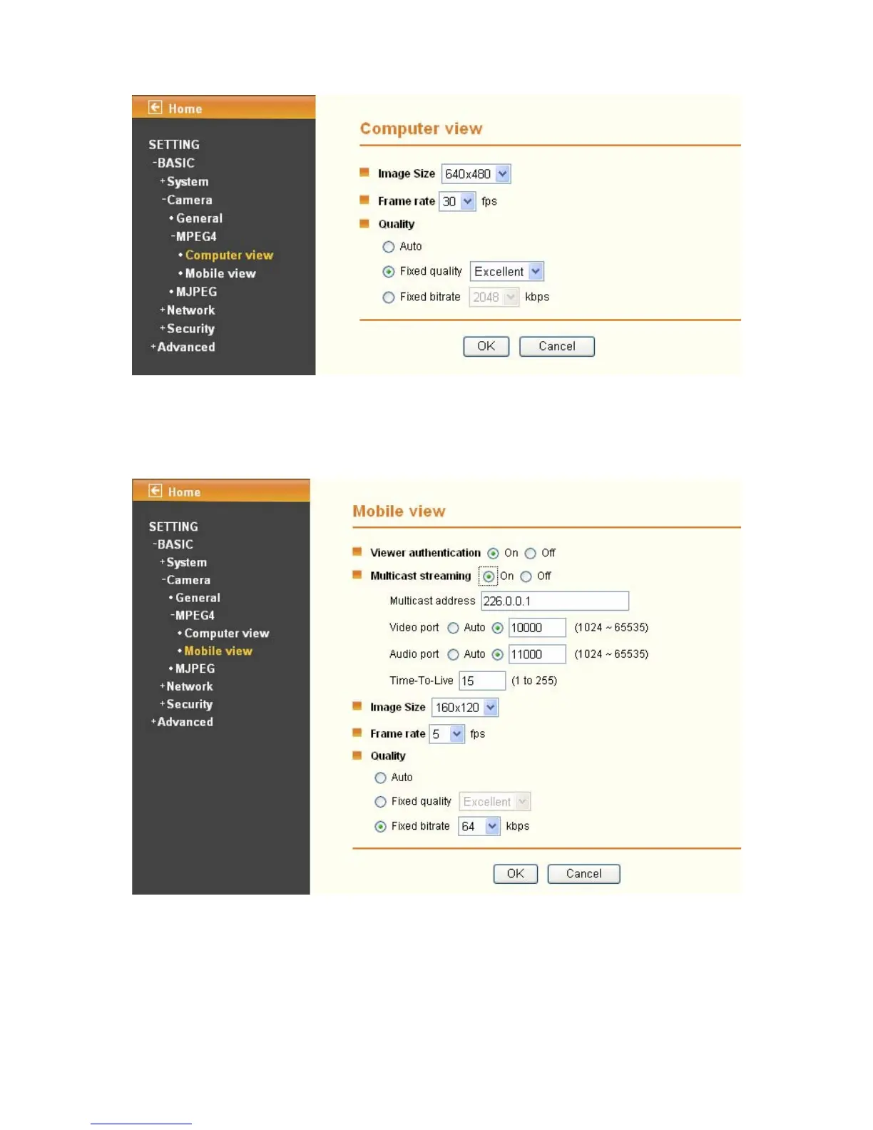 z Video/Audio Port: Specify the transmission port number of the video data, which is an
