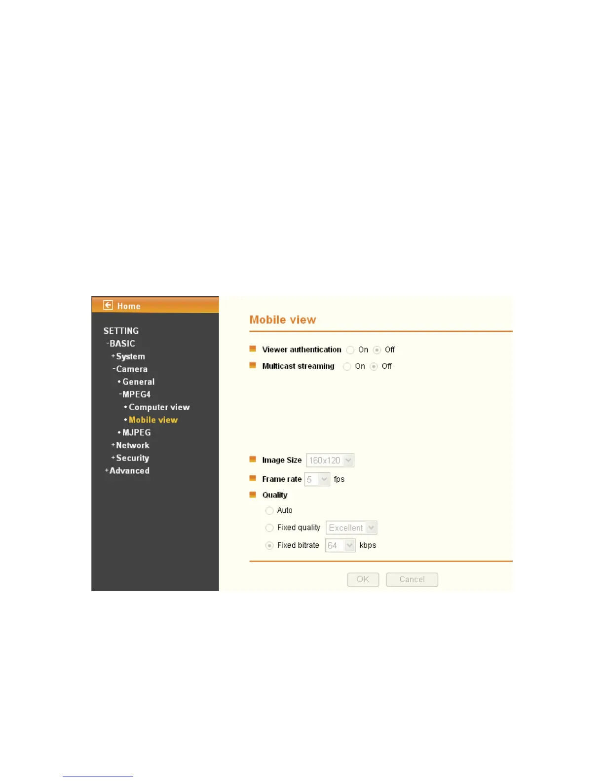 ¾ Image Size: The image size of Mobile View is fixed at 160 x 120.