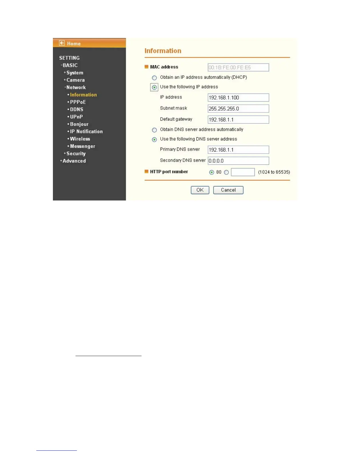 ¾ HTTP port number: Select 80 in general situations. If you want to use a port number other