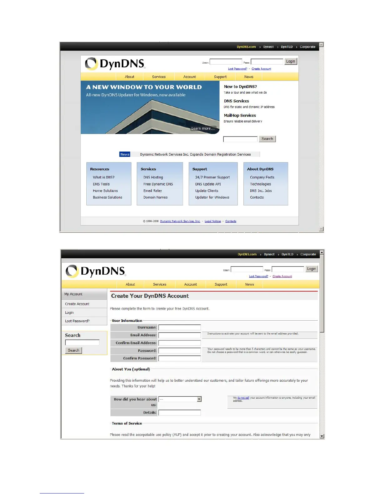 2. Input all information and follow step by step with DynDNS.