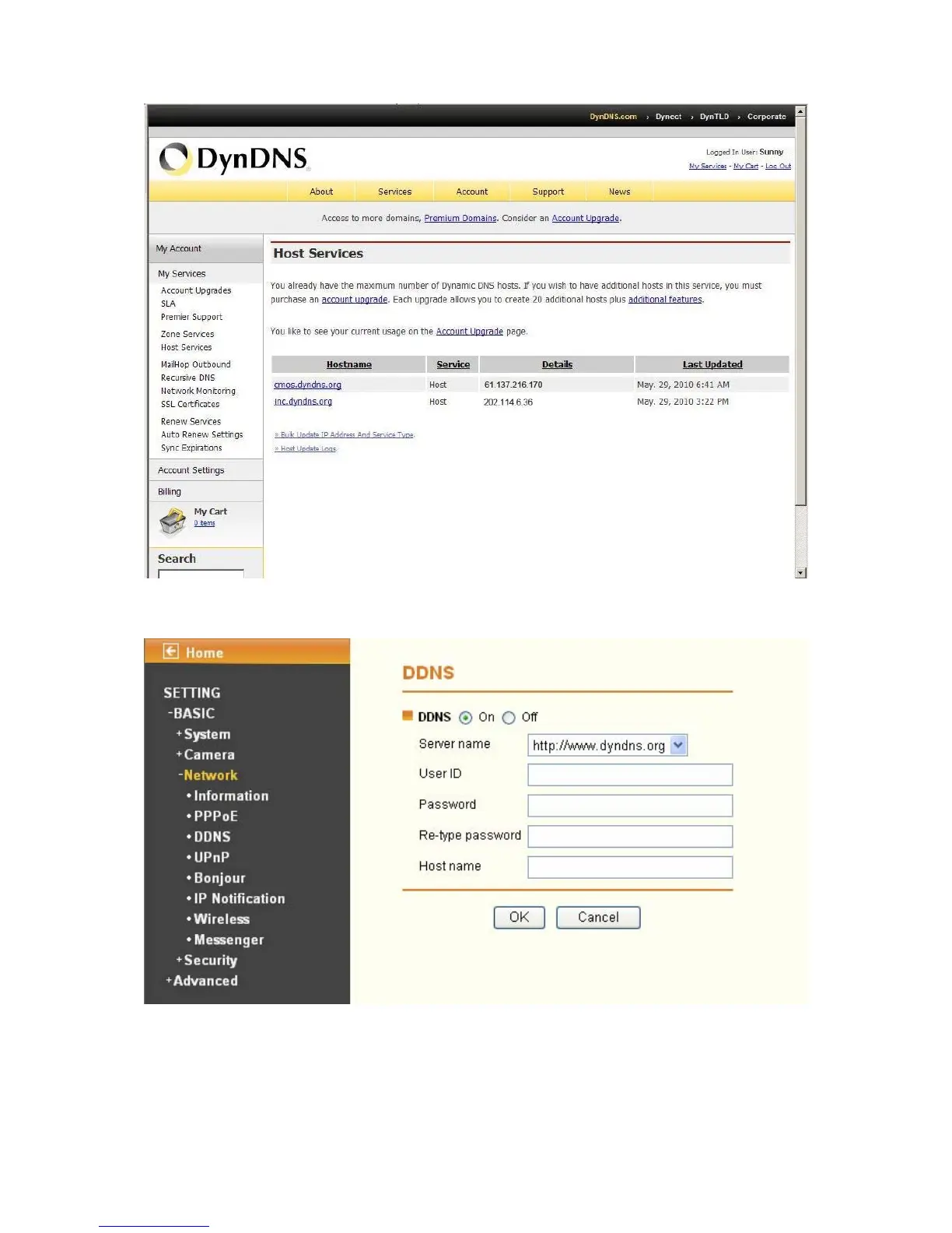 6. Type your DDNS User ID, Password and Host name in Setting → Basic → Network →