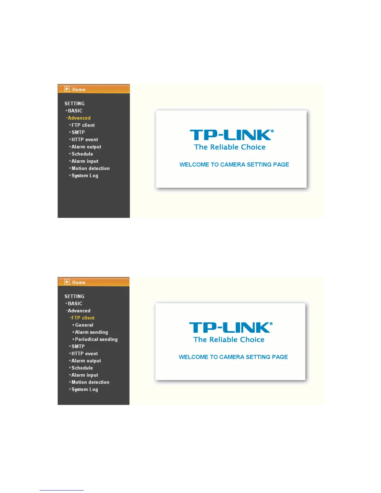 built-in motion detection function to FTP server. FTP client setting menu is composed of three
