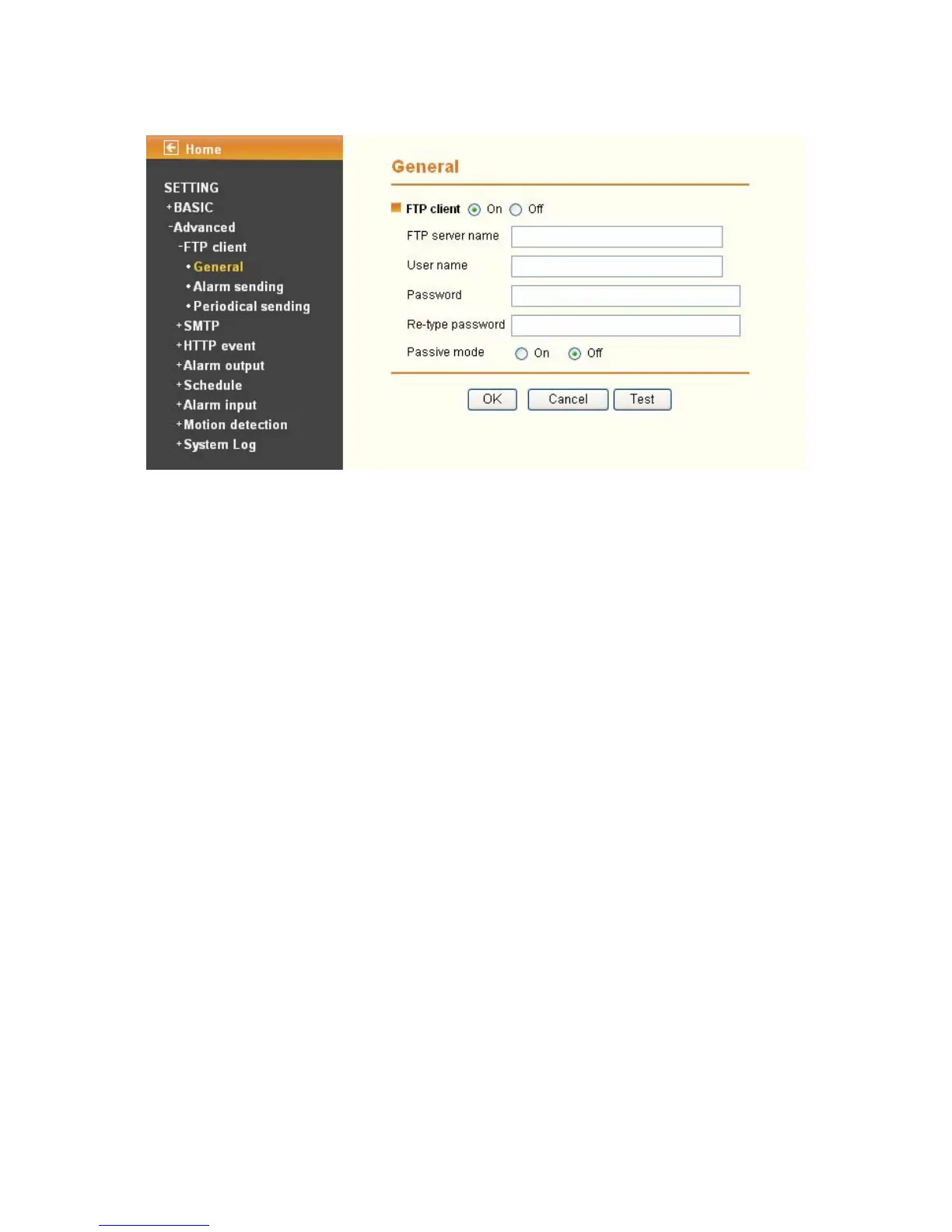 by the built-in motion detection function. Select On to send the image file to FTP server linked with