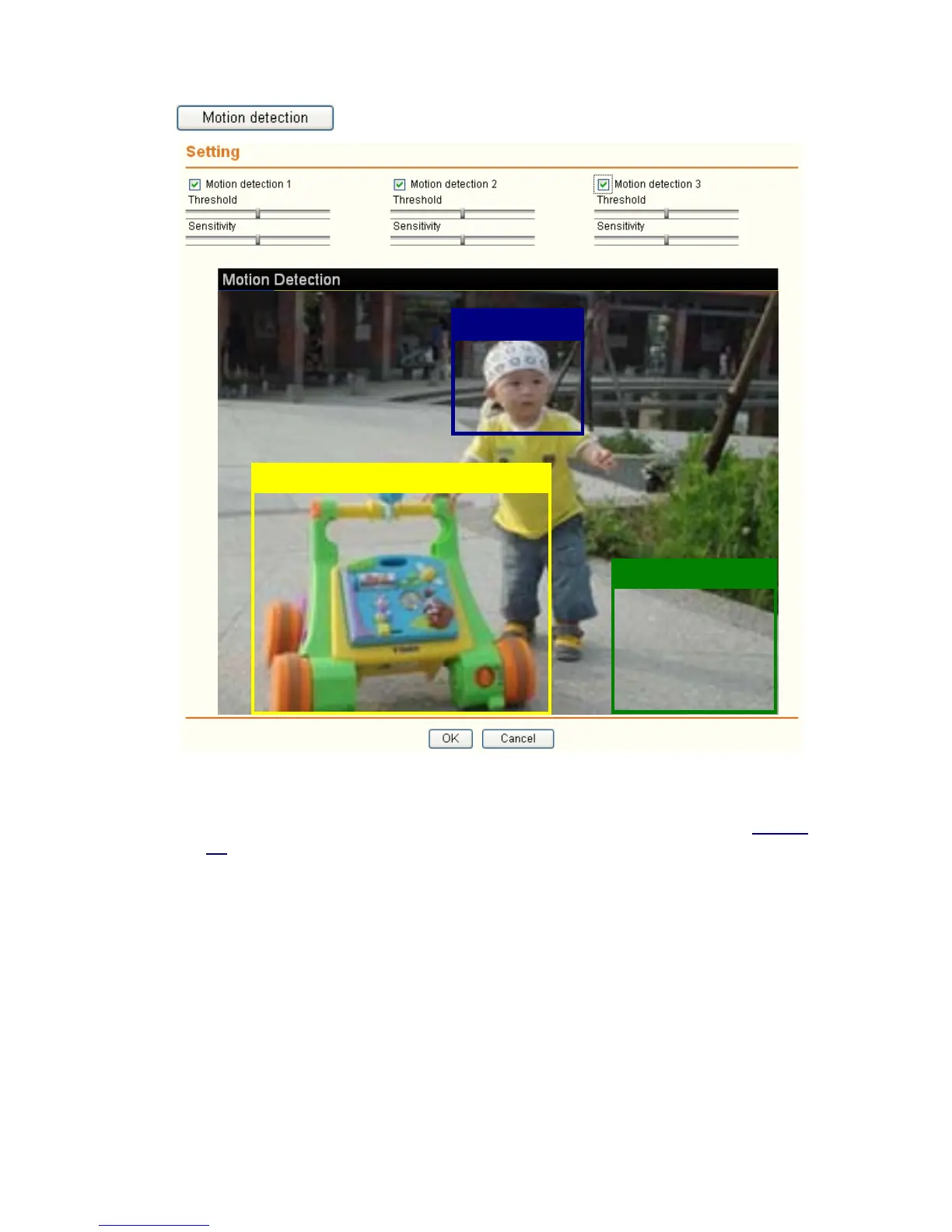 Advance →Motion detection → Setting”). For more details, you can check Section