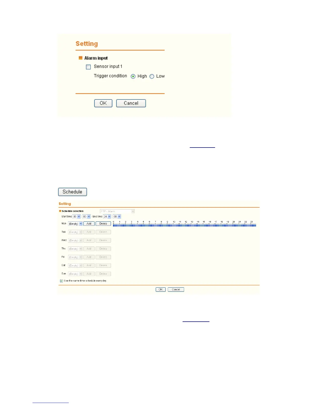 Alarm input → Setting”). For more details, you can check Section 7.6
