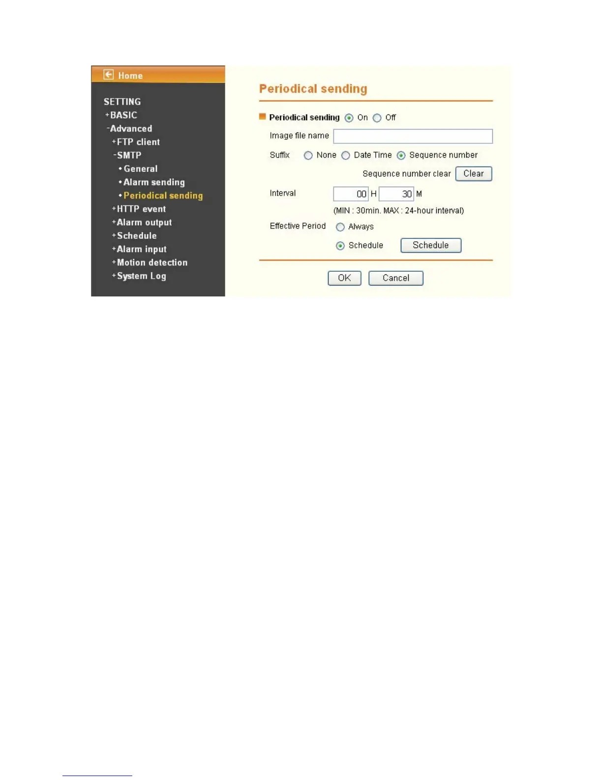 ¾ Interval: Set the time interval of the period sending. Minimum value is 30 min and Maximal