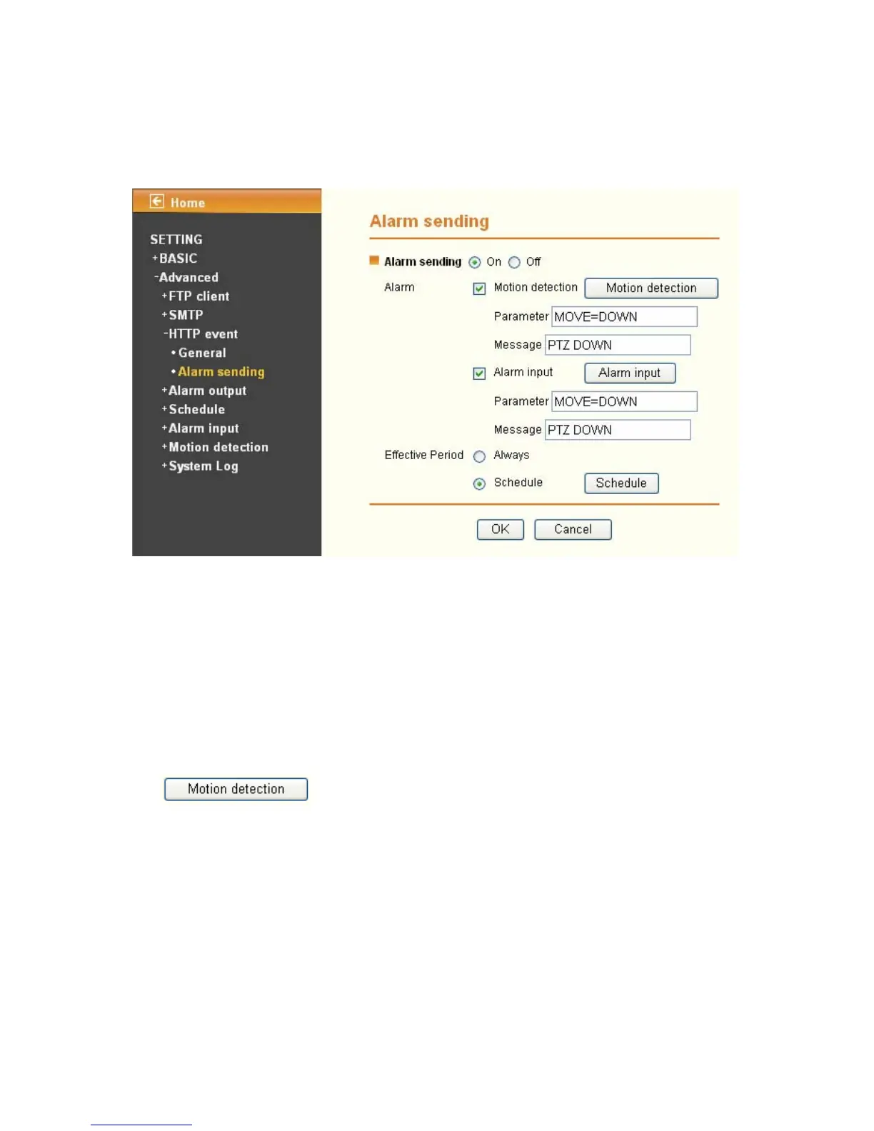 Set to send the mail with connection to the alarm detection by the built-in motion detection