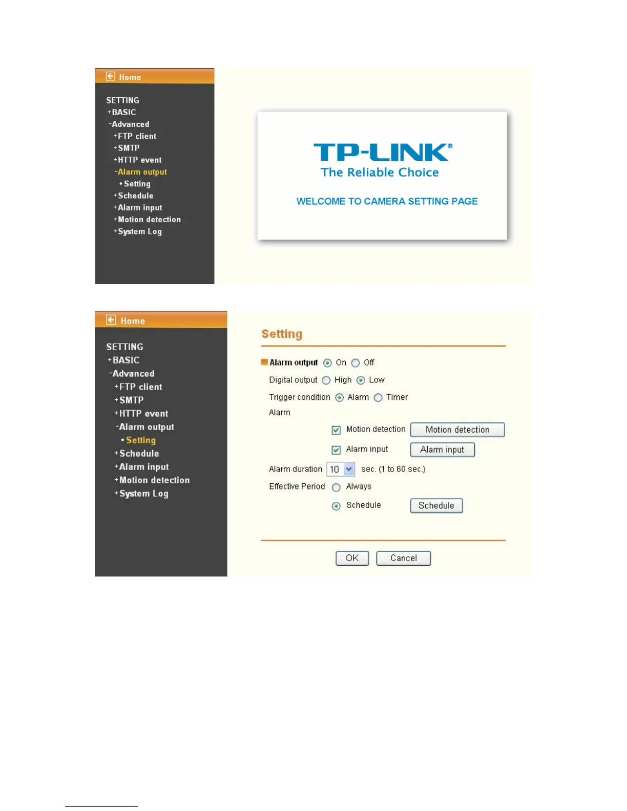 ¾ Trigger condition: Select the mode of the Alarm output function. You can choose “Alarm” or