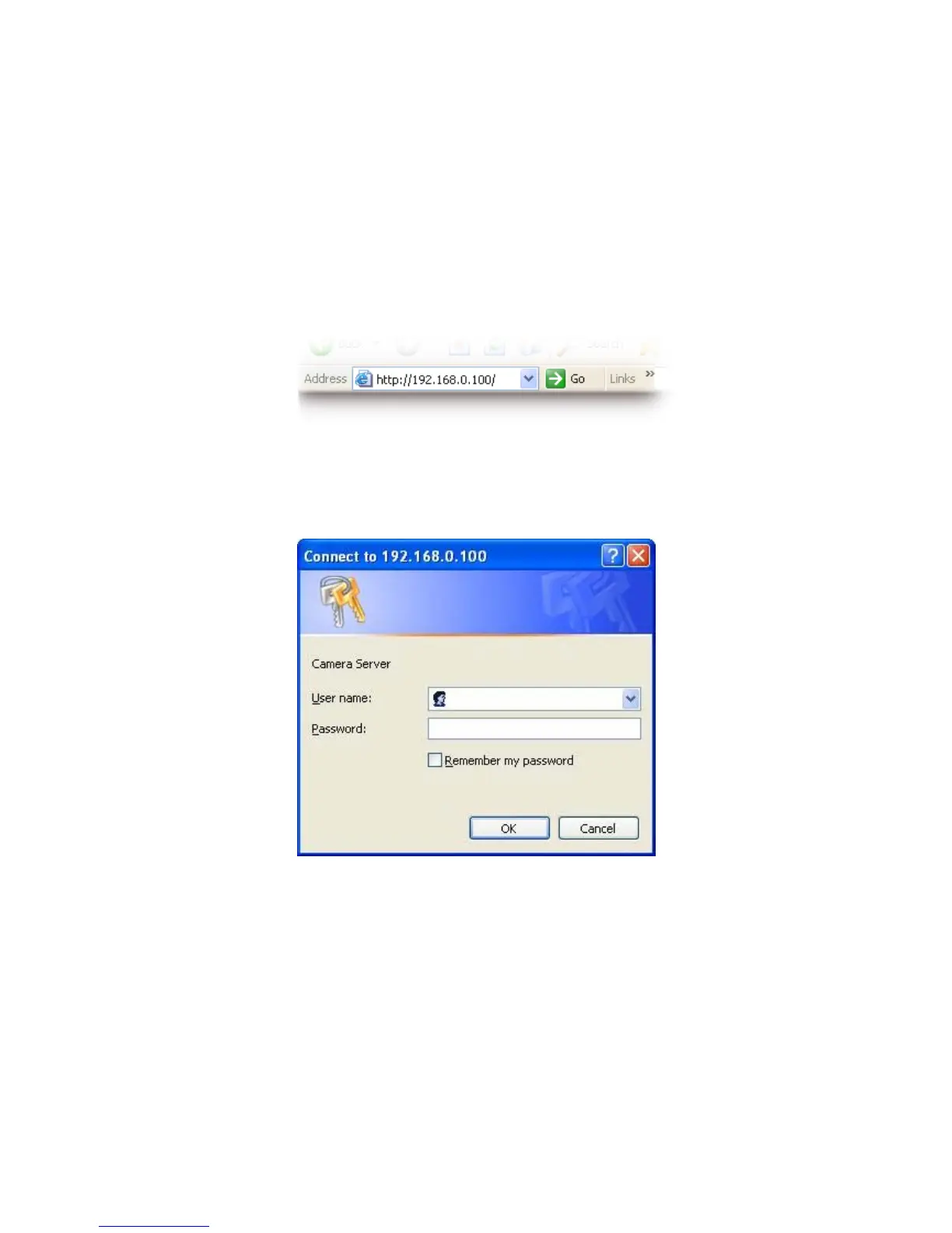 1. Start the web browser on the computer and type the IP address of the camera you want to