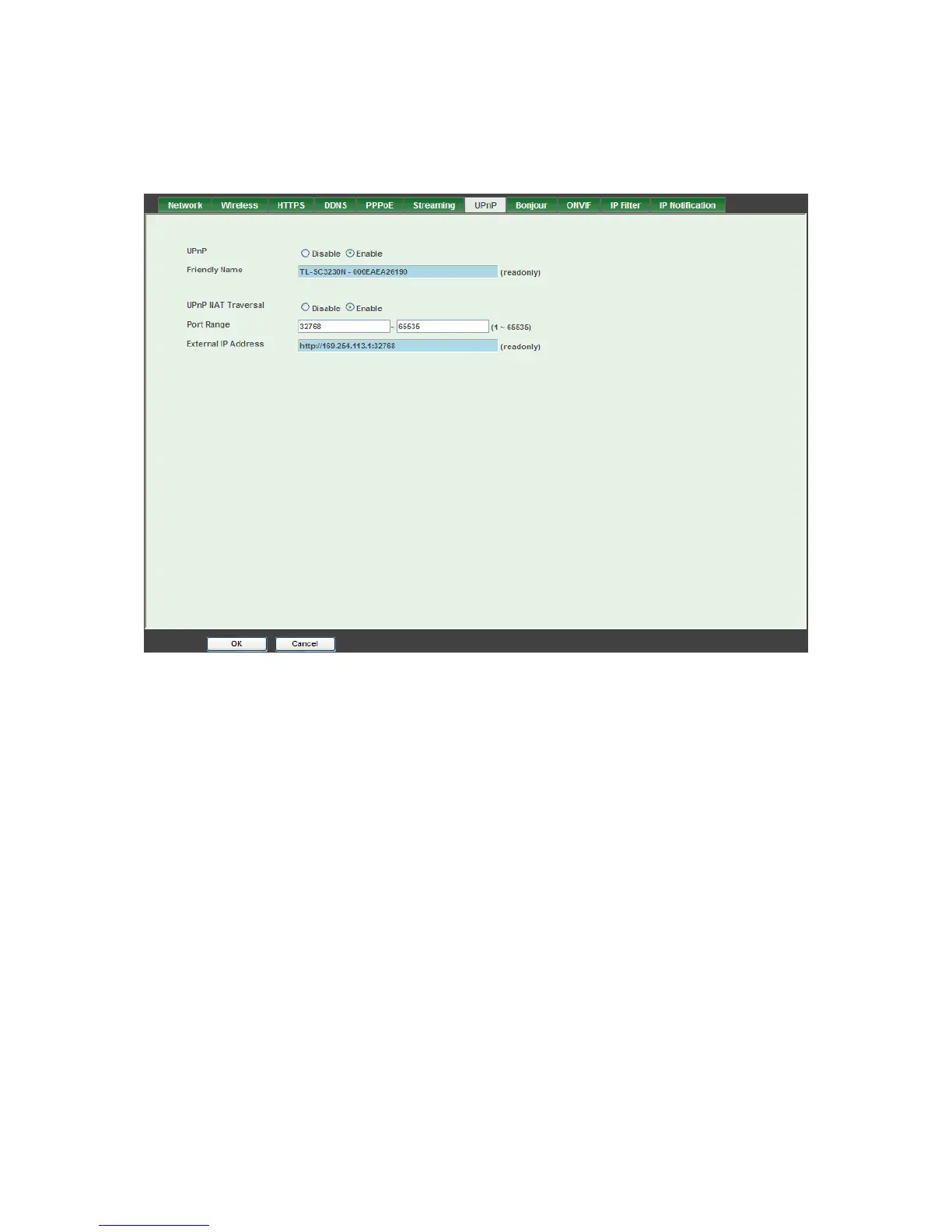 ¾ UPnP NAT Traversal: When enabled, the camera will attempt to configure port mapping in a