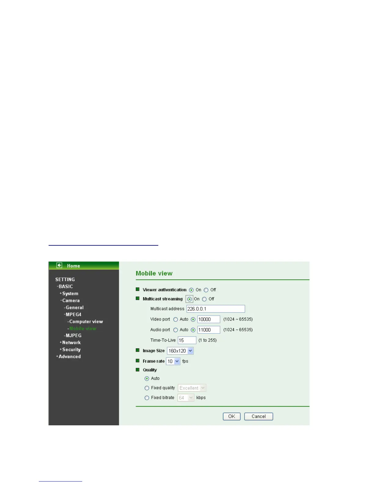 ¾ Frame Rate: Set the frame rate of the MPEG4 image. You can choose values from 1, 2, 3, 4, 5, 7,