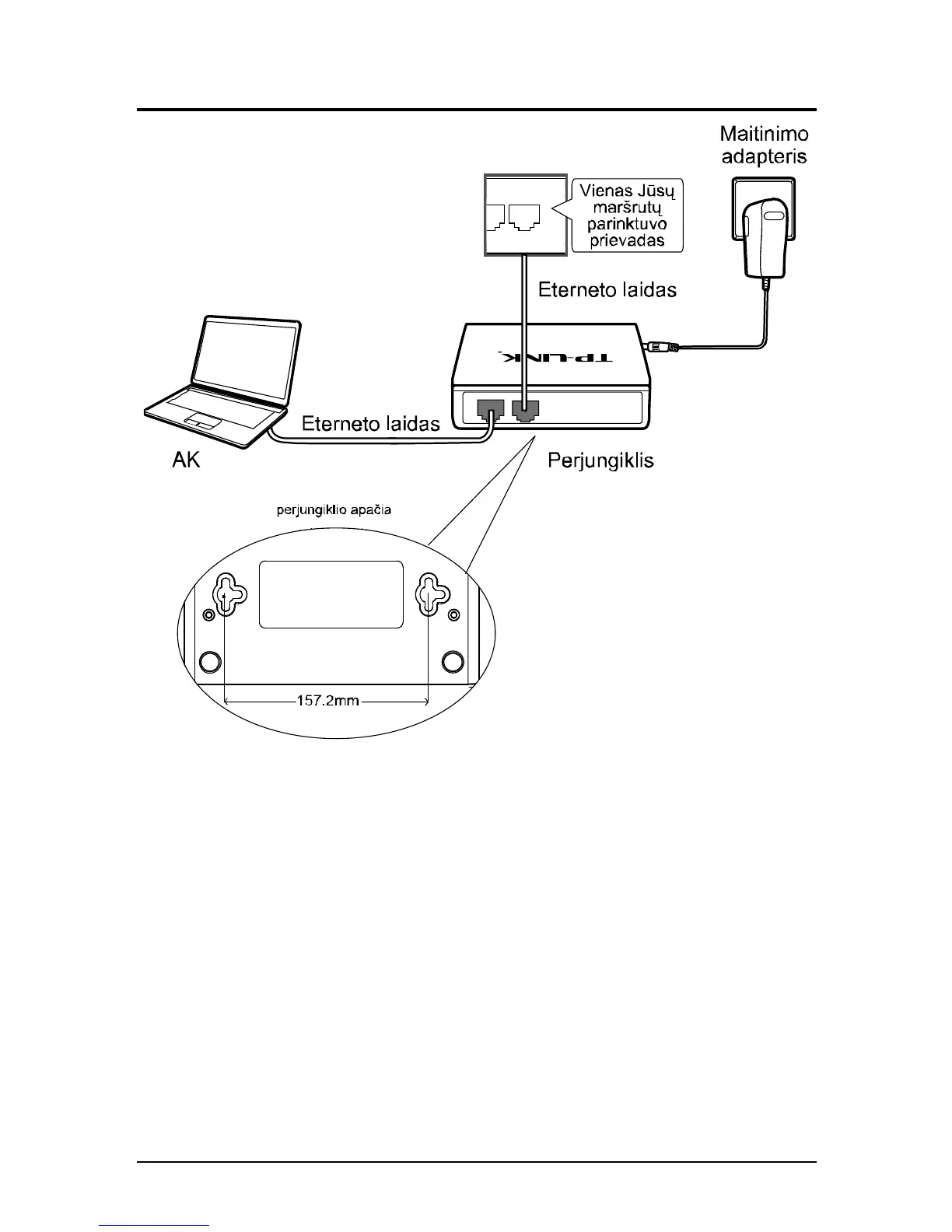 TL-SF1005D/TL-SF1008D gali būti montuojamas prie