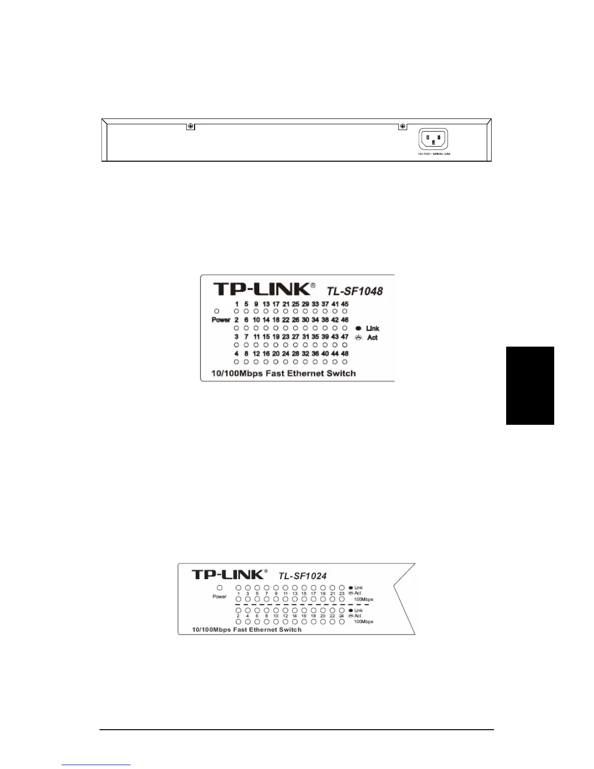 TL-SF1048:n takapaneelissa on vain virtaliitänntä. Liitä siihen virtajohdon