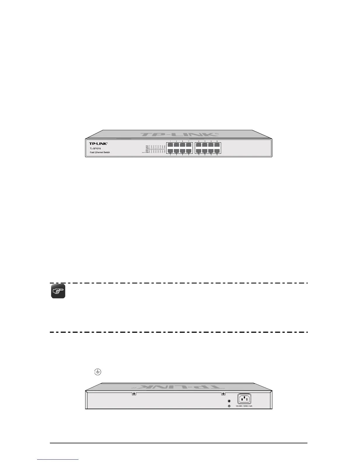 The rear panel of TL-SF1016 features a power socket and a Grounding Terminal
