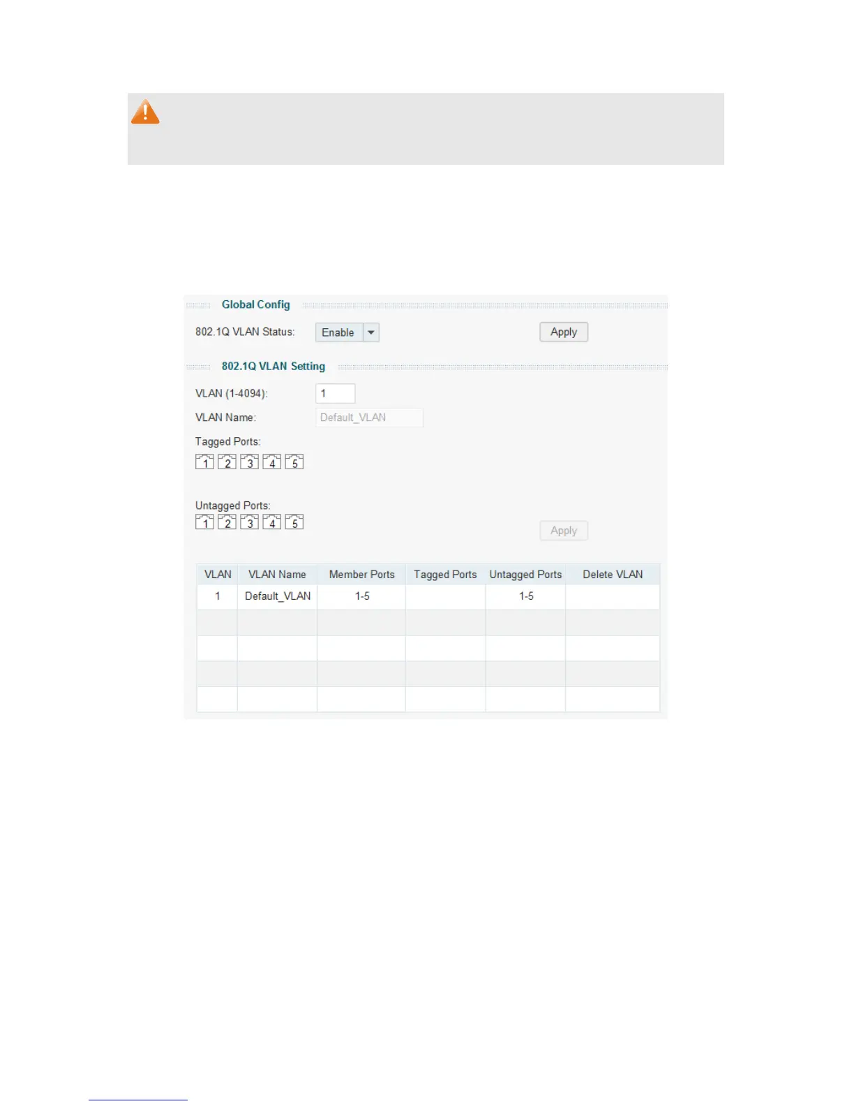 On this page you can configure 802.1Q VLAN feature and view the related settings.