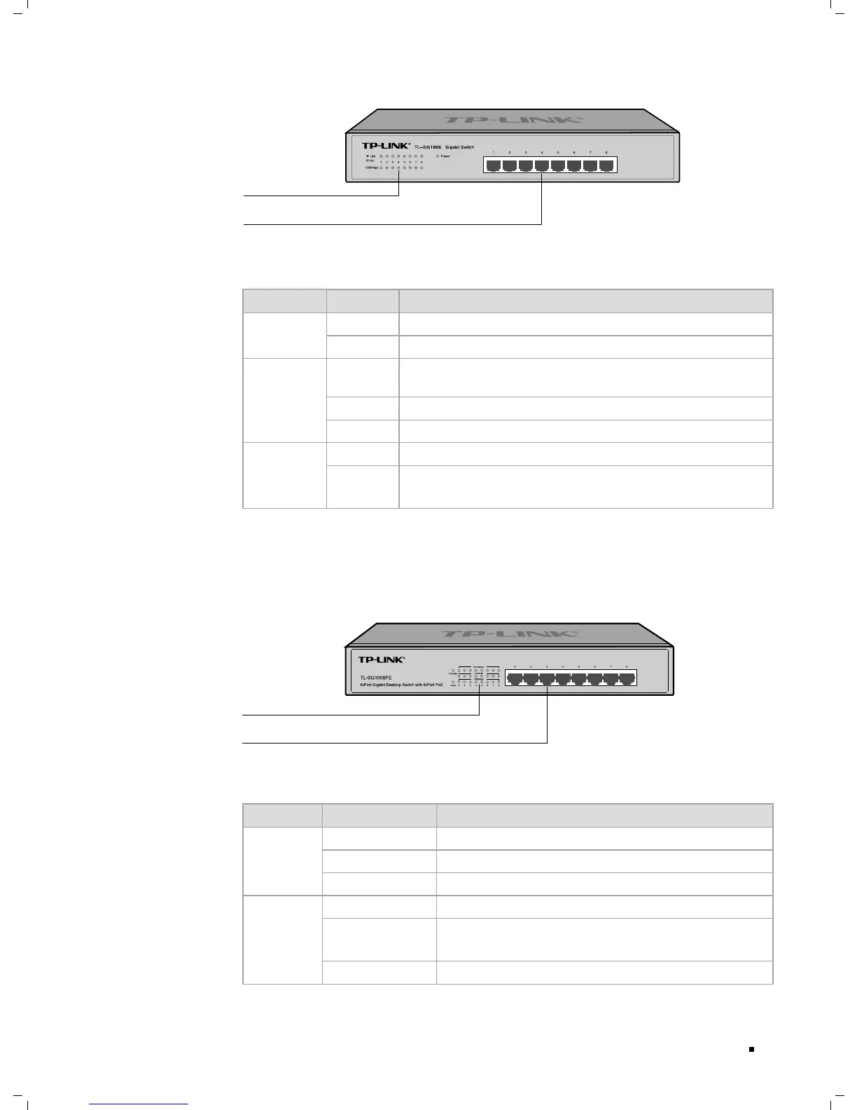 Front Panel of TL-SG1008PEFigure 1-7