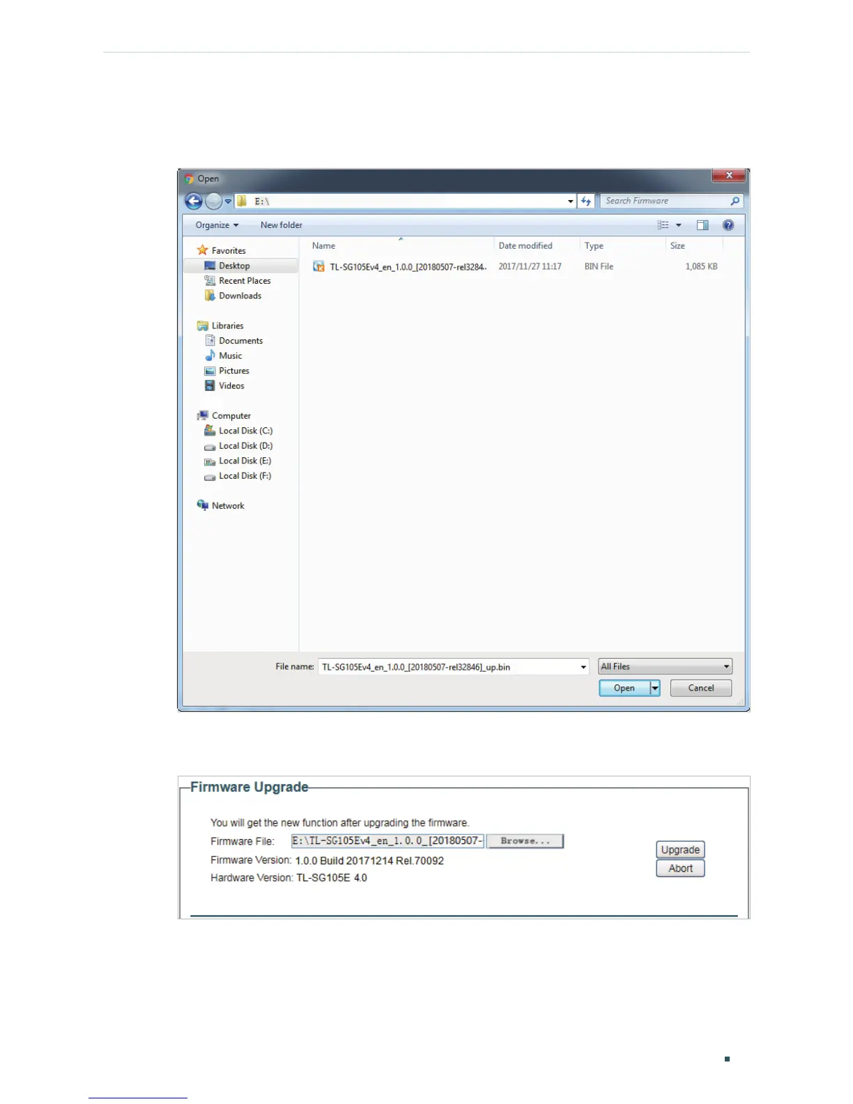 3) Click Browse to load the following page. Specify the firmware file path and select the