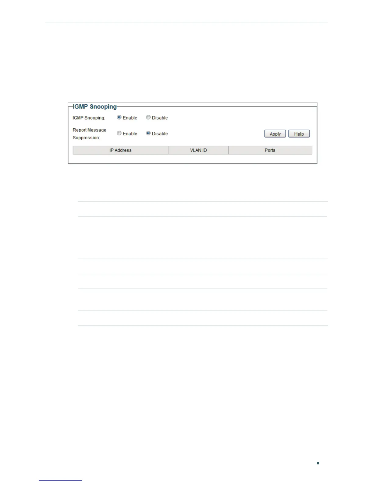 IGMP Snooping Enable or disable IGMP Snooping globally.