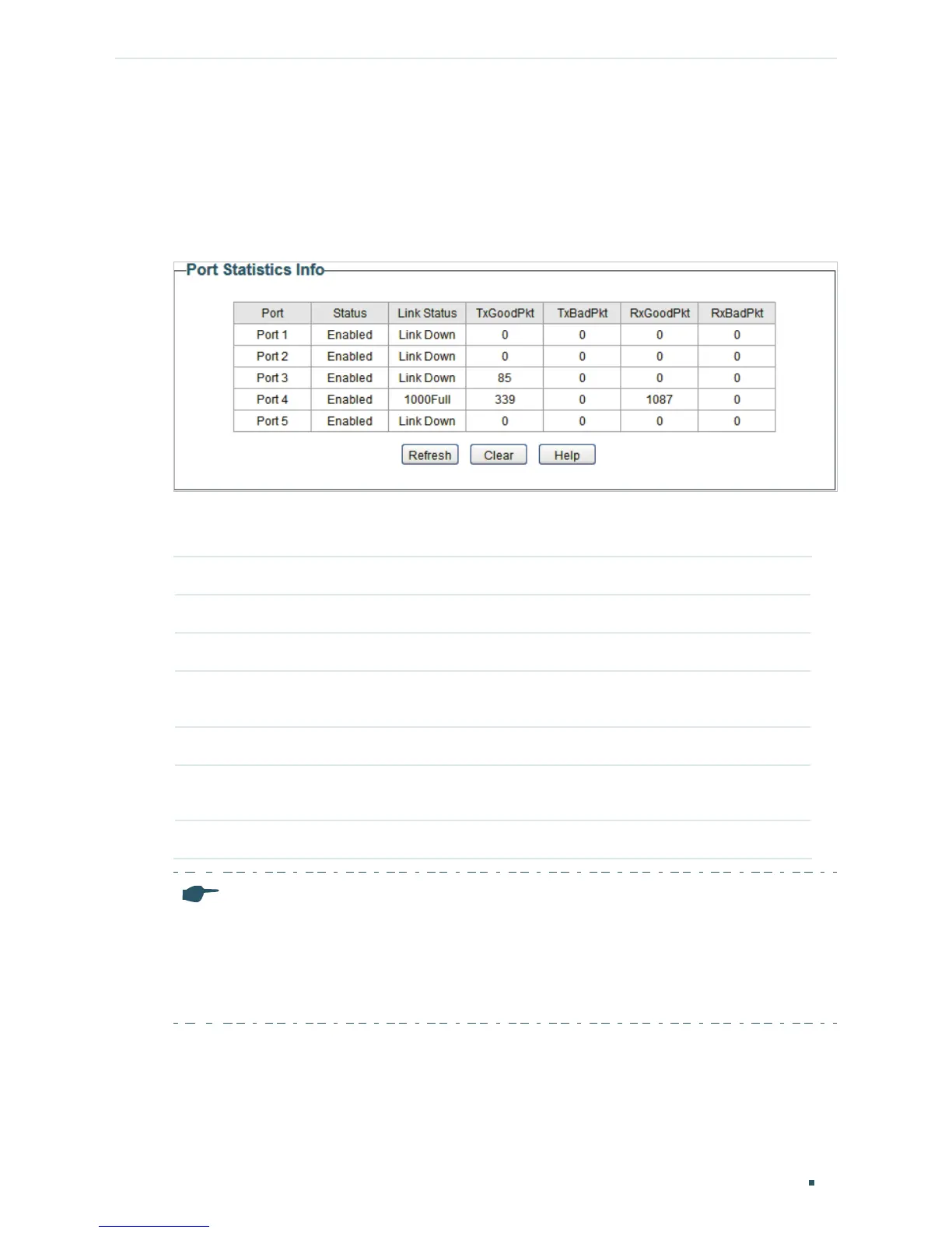You can view the statistics of each port. You can click Clear to clear the data, also you can