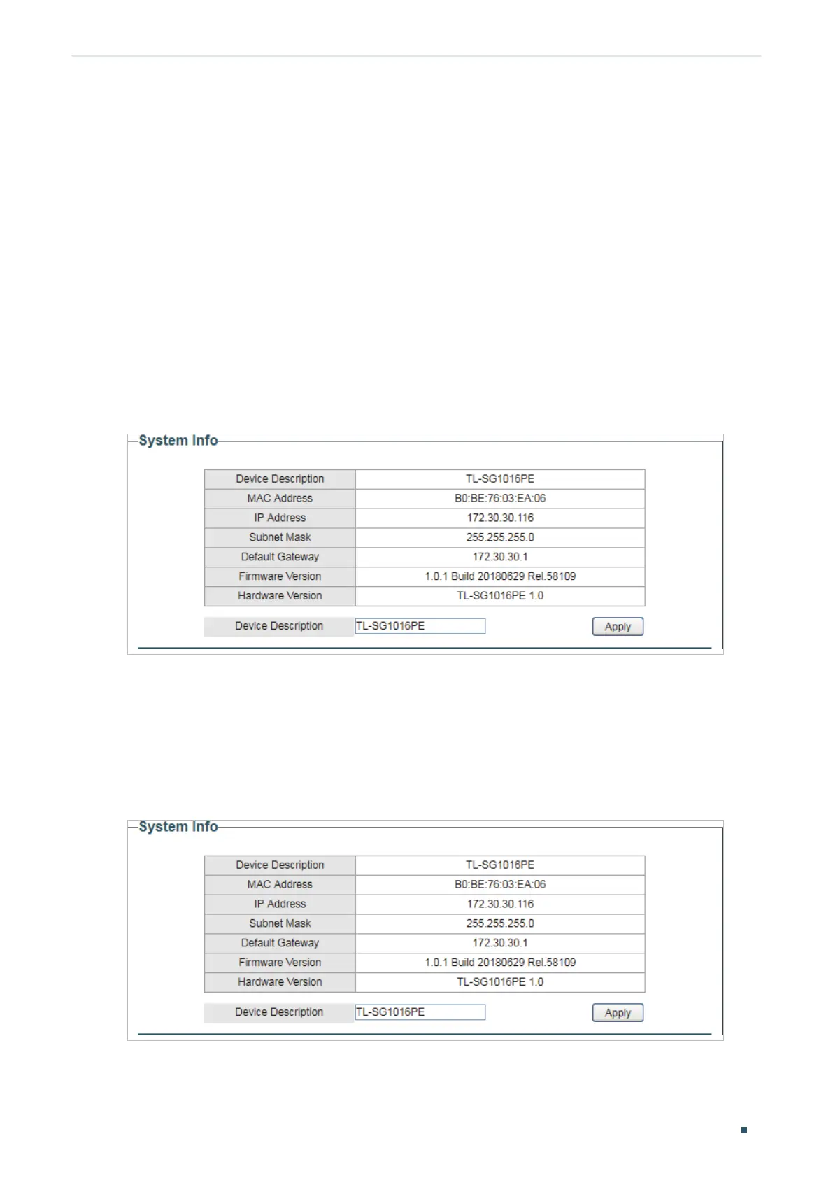 Choose the menu System > System Info to load the following page. Specify a new device