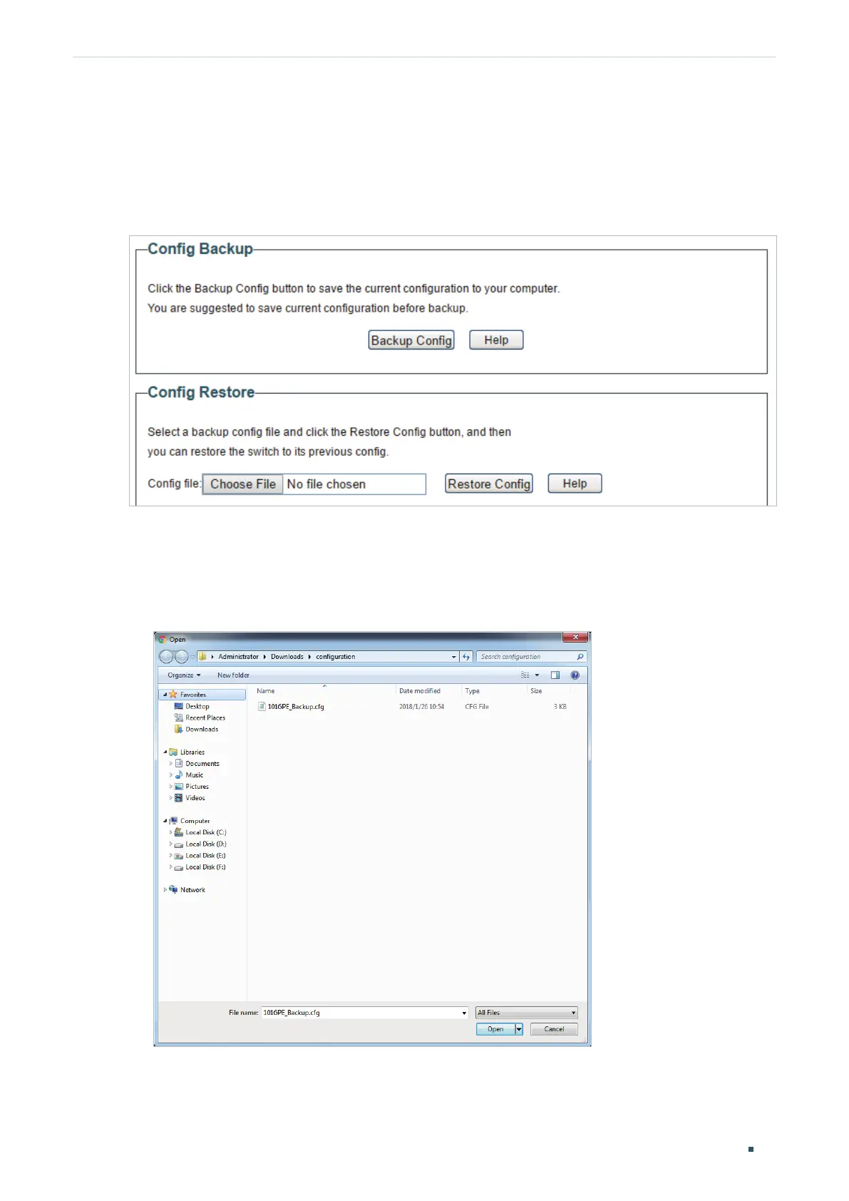 1) In the Config Restore section, click Choose File to load the following page. Specify the